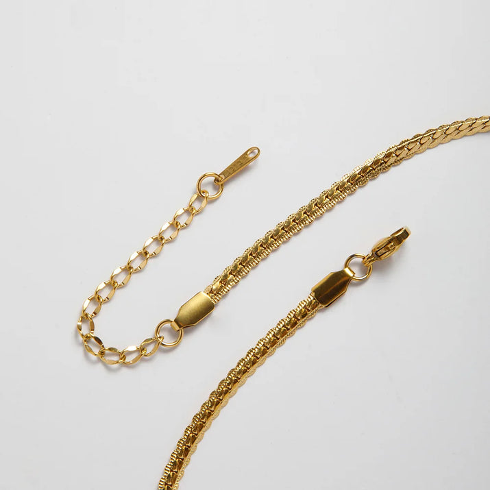 Answer 2: The necklace is made from high-quality stainless steel, plated with 18k gold, ensuring durability and resistance to tarnishing.